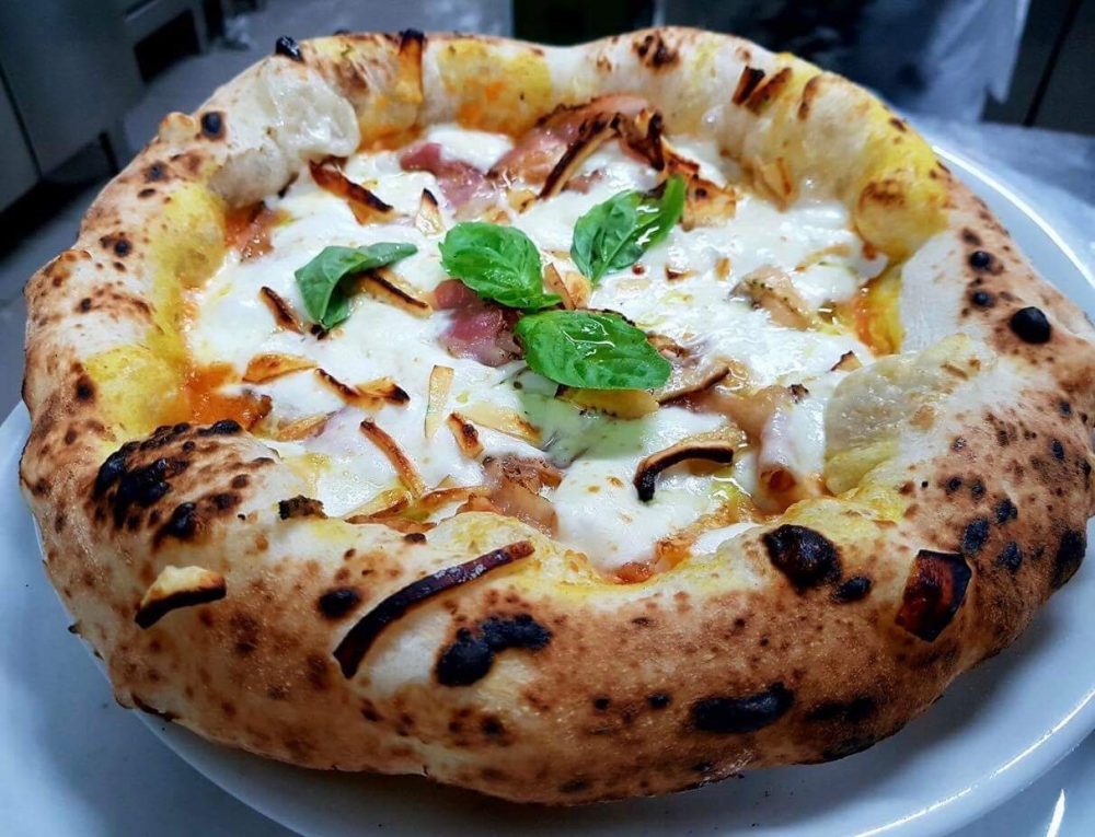 La ricercatezza degli ingredienti, la maestria delle dosi e la conoscenza delle materie prime, sono alla base del lavoro di Vincenzo. La pizza per l’autunno è la Carciofo in due consistenze, condita con vellutata di carciofi, bufala campana, carciofi in tempura, pomodorini rossi semidried. In uscita dal forno il guanciale, il tarallo sbriciolato, il crumble di olive nere, il caciocavallo podolico e il basilico cristallizzato. € 10,00