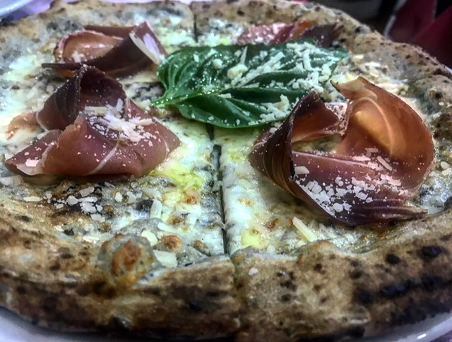 Una pizza raffinata nel gusto quella del talentuoso Vittorio Vespignani. Si chiama Non la fai Franca, composta da capocollo di Martina Franca (presidio Slow Food ), carciofi casarecci, caciocavallo dell’affinatore Angelo Santabarbara, su una base di mozzarella di bufala caseificio Il Cosolare. € 10,00