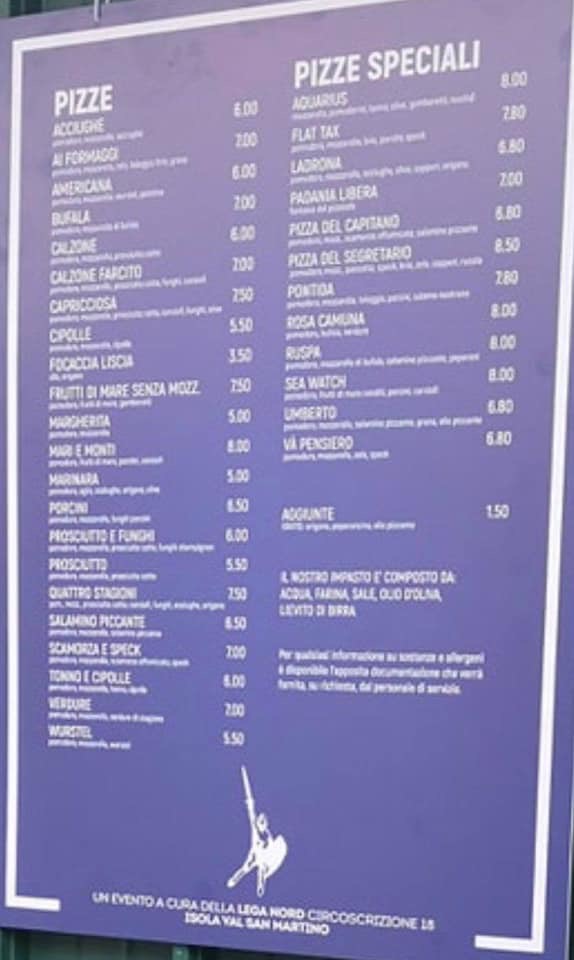 La Pizza del Capitano nel nuovo menu delle pizze leghiste: manca la Papeete