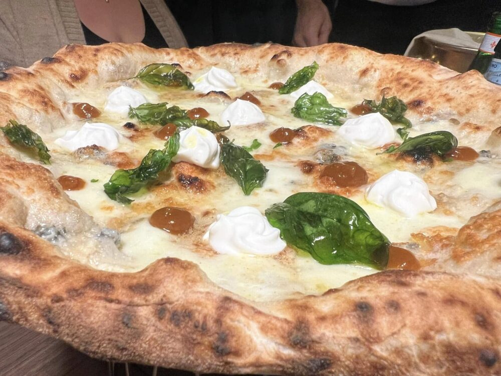 L’impasto è napoletano tradizionale, un diretto che esalta i sapori dei prodotti usati, lievitato per 24 ore.
