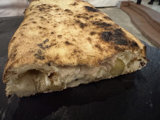 Il Panuozzo è un’altro assaggio che suggerisco di provare, una preparazione rustica con una lunghezza che oltrepassa i 50 cm. Abbondante e croccante. Ho scelto Ariccia, con la porchetta preparata da Gabriele e cotta nel forno a legna, provola e patate (13 €).