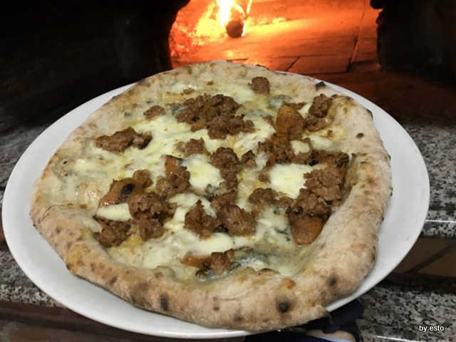 Don Vincenzo con fiordilatte, gorgonzola, salsiccia rossa di Castelpoto fresca, zucca napoletana grigliata.