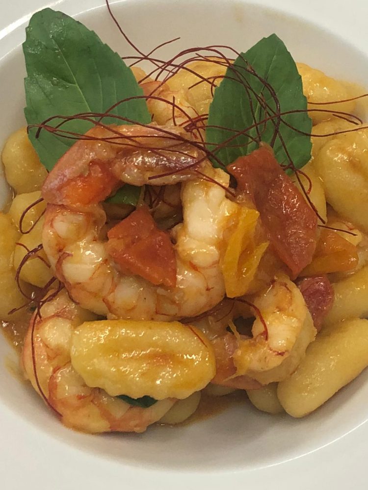 Incredibile ma vero, primo piatto senza glutine: gnocchi conditi con salsa di pomodorini del piennolo e gamberi