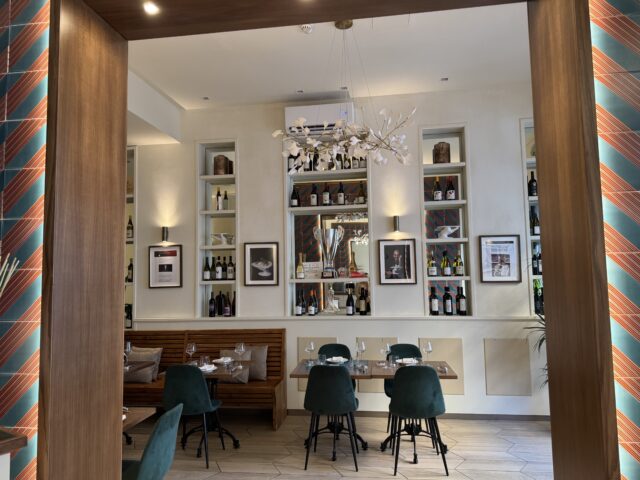 La capitale, sempre più ricca di indirizzi dedicati alla pizza d’autore, lo ospita oggi nel quartiere Flaminio, in viale Pinturicchio, in un locale dai toni eleganti e dai dettagli curati (come la refreshing towel di cotone), completo di un dehors affacciato sulla strada. Un ambiente accogliente, dal respiro internazionale ma dall’atmosfera raccolta, con una capienza di circa 50 persone e un forno con banco a vista che rende protagonista la gestualità e la preparazione della pizza. Comode sedute a divano e una parete interamente dedicata al vino esprimono fin da subito la forte sinergia tra la bevanda e la pizza. Un’impronta fortemente voluta da Chiara Maggio, moglie di Francesco, appassionata conoscitrice di vino e ricercatrice di piccole cantine artigianali. È lei ad affiancare etichette di nicchia a grandi nomi del panorama vitivinicolo nazionale e internazionale. La carta conta 130 etichette, in costante aggiornamento, tutte selezionate per accompagnare e valorizzare la proposta gastronomica di Avenida Caló, e la lista di Via Toledo Enopizzeria gli è valso il premio Best Wine List 50 Top Pizza 2023.