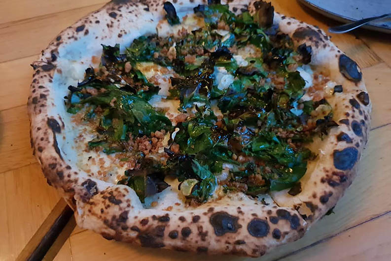 Lo stacco c’è dunque quando si passa alle altre pizze con diverse farce dove c’è il ragionamento del cuoco e di chi la materia ha imparato a pensarla e a lavorarla dal classico francese ai rivoluzionari Adrià e Redzepi. Ed è quello che consigliamo di fare: lasciarsi andare alle diverse proposte in cui quel tipo di impasto risponde decisamente meglio e alla grande.