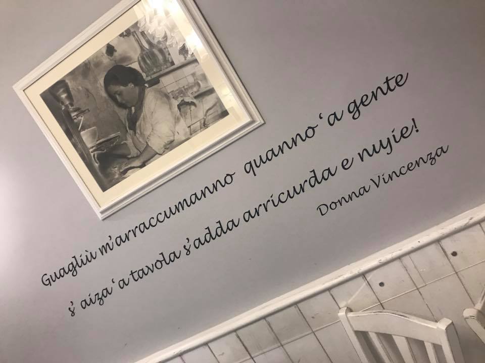Si armarono di forza e coraggio e misero su un ristorante, offrendo ai propri clienti una formula unica per quei tempi, cioè elevata qualità dei prodotti a prezzi contenuti. Come sempre succedeva in queste circostanze, la donna diventa il punto di riferimento nella gestione. Vincenza amava ripetere ogni giorno: ”Guagliù m’arraccumanno, quanno ‘a gente s’aiza ‘a tavola s’adda arricurdà e nujie!” e così era… e così è”!