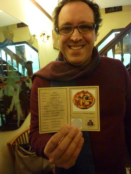 Paolo Pagnani mostra la carta di identtà della Margherita ideata dal padre Vincenzo 21/12/2010 Torna a: Napoli, Pizzeria Brandi: dell’invenzione della Pizza Margherita nel 1889 Paolo Pagnani mostra la carta di identtà della Margherita ideata dal padre Vincenzo← PrecedenteSuccessiva →