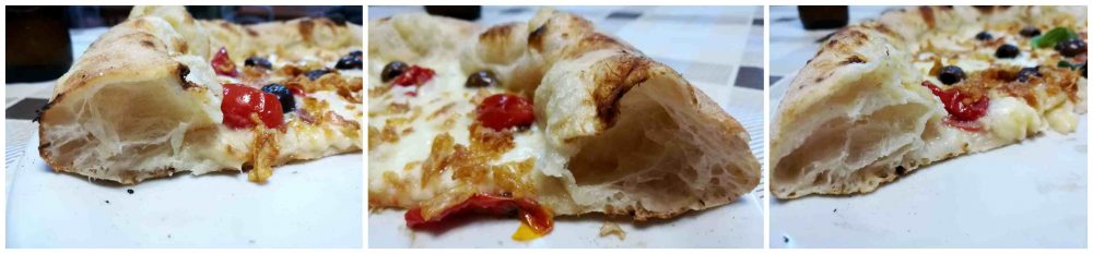 L’abbinamento e le proporzioni degli ingredienti ben esaltano l’impasto che con la sua leggerezza si lascia mangiare fino all’ultimo pezzo di cornicione.