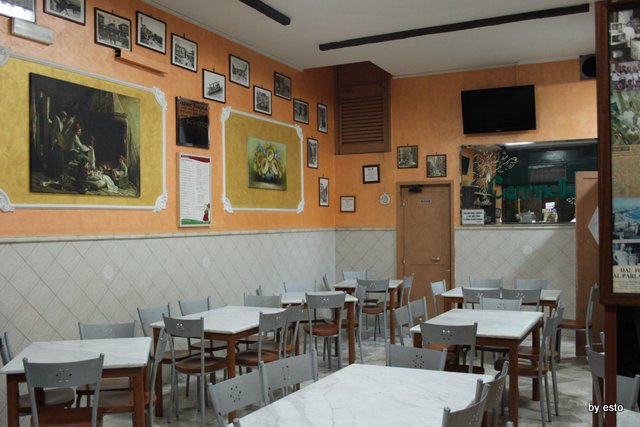 Ci sono i tavoli di marmo e l’arredo è spartano.