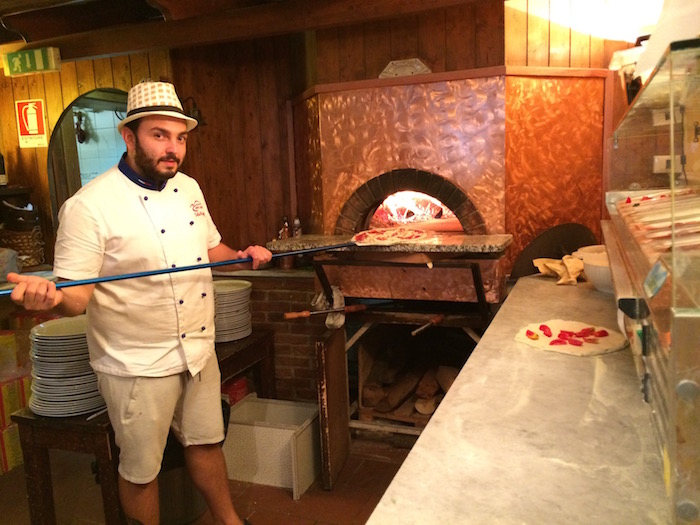Primo passo è il cambio dei mattoni del forno, inserendo il classico biscotto di Sorrento, poi fa analizzare l’acqua e fortunatamente la trova molto simile a quella del napoletano. Il risultato è una pizza che riprende la tradizione partenopea, ma deve assecondare il gusto del territorio che vuole una pizza leggermente più fragrante, agevolata anche da una cottura in forno a circa 480^ ottenendo un risultato ideale.