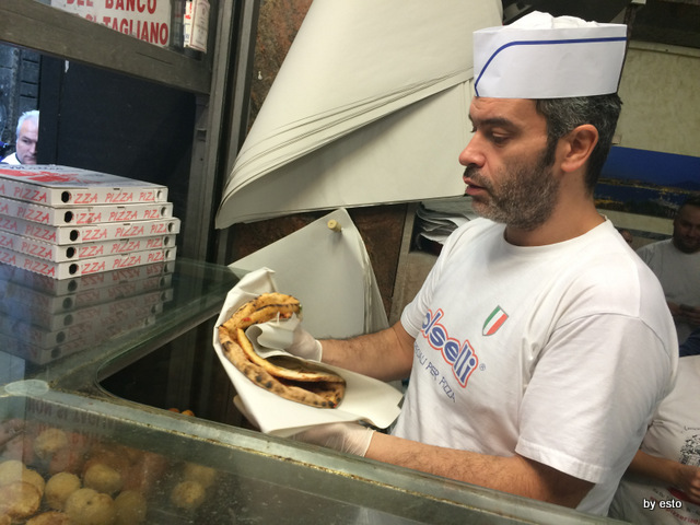 Comincia il rito della Pizza a’ libbretta o a’ libbretto o a portafoglio.