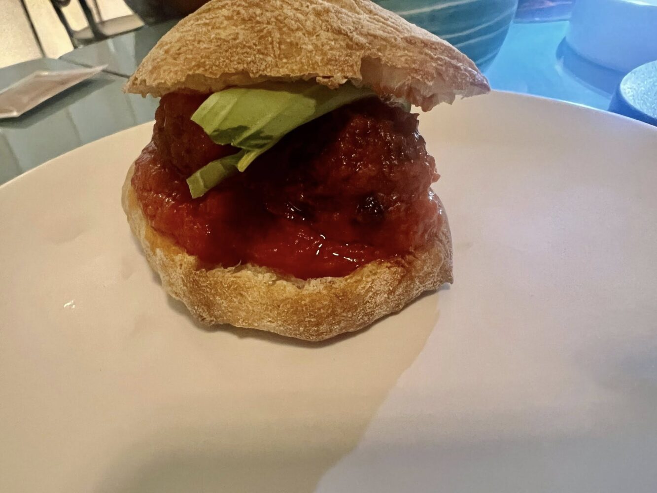 A seguire si pesca nella memoria popolare: il pane nel ragù napoletano perfettamente eseguito. Con polpetta!