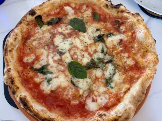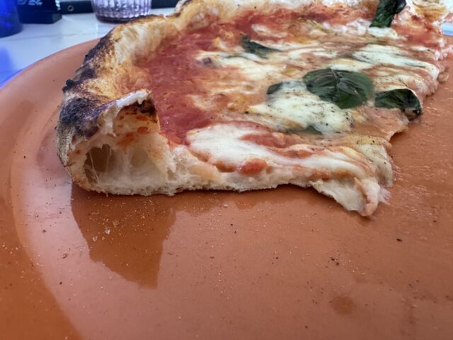 Il risultato è una pizza leggera, con panetti da 280 grammi che, nonostante la generosa pezzatura, non risultano affatto pesanti. Disco scioglievole, giusta quantità di ingredienti, ben dosati e distribuiti sulla base sottile con il cornicione appena pronunciato che si mangia con piacere. Una pizza verace come idea, ma contemporanea nella realizzazione.