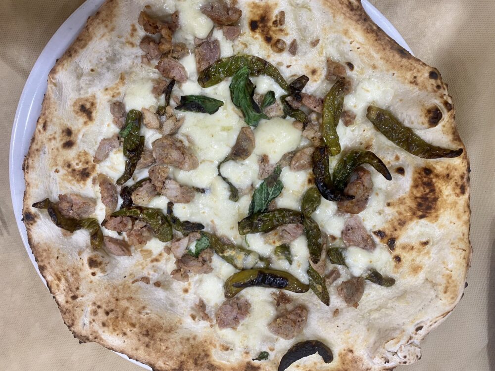 Dal menù, oltre alla Margherita con il fior di latte, ho provato A’ Pullecenella, con peperoncini verdi, salsiccia, mozzarella, olio e basilico. Buona di sapore, peccato solo per la cottura non uniforme, in quanto il cornicione in alcuni punti non era asciugato completamente, ad ogni modo, stornata dal conto di loro iniziativa.