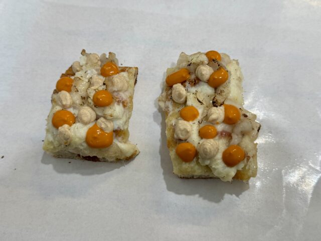 Ho assaggiato le sue ultime proposte ed è stato un viaggio dentro il mondo di Alessandro. Vederlo dietro al bancone, rifinire ogni trancio come se fosse un piatto gourmet al pass della cucina, dimostra quanto ci crede.