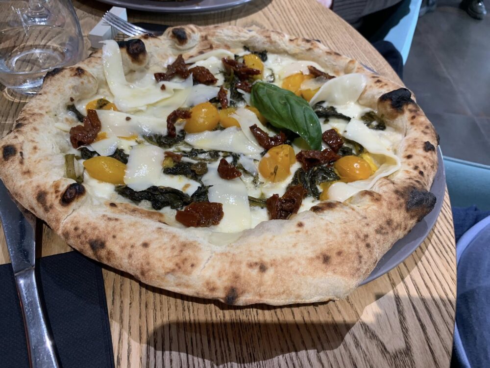 Dietro gli impasti, le cotture e gli abbinamenti c’è molto lavoro, il risultato finale è una pizza di grande levità e piacevolezza. Il servizio, tutto al femminile, è cordiale e preparato.