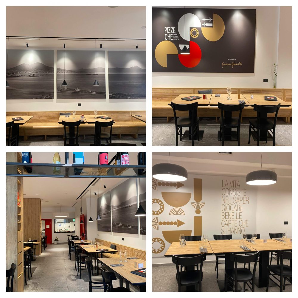 Giovanni Grimaldi si è spostato solo di qualche civico nella nuova pizzeria che porta il suo nome, nel pieno centro di Grottaminarda. Lui e sua moglie Nicoletta, nonostante l’emergenza sanitaria, hanno voluto un posto nuovo, che li rispecchiasse nella proposizione della pizza, e nello stile dell’accoglienza dei clienti. Per cui sono passati dalla rustica pizzeria Il Drago ( chiusa definitivamente), alla moderna e “super fashion” pizzeria Giovanni Grimaldi. Due sale ( una al piano inferiore ), tre bellissimi forni, di cui uno dedicato al gluteen free, e una cucina enorme, che si lasciano guardare dietro i vetri della grande vetrata che da sull’ambiente più grande al piano superiore, che conta circa 80 coperti.