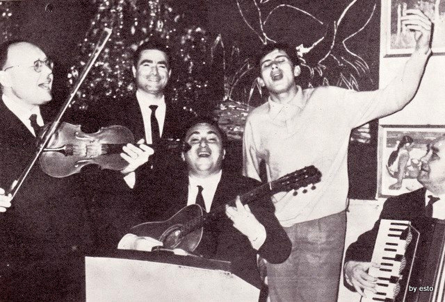 Un giovanissimo Gianni Morandi al Ristorante Umberto negli anni ’60 con i due maestri Pino Pica (violino) e Tonino Restano (chitarra).