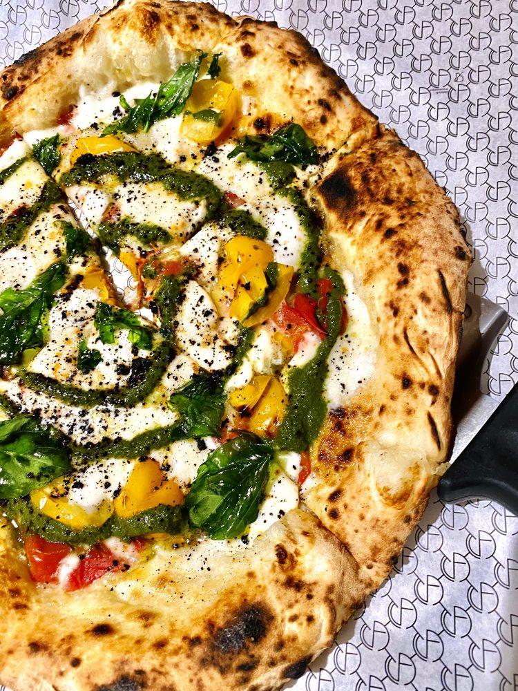 Tra le nuove pizze già in lista, segnalo la Bruschetta 3.0 con pomodori confit, bufala, polvere di aglio nero fermentato e basilico cristallizzato, e la pizza Verdure in festa, un omaggio all’estate, che vede ortaggi di stagione, come zucchine, melanzane e peperoni, cucinate in vasocottura e adagiate sul disco con una base di crema di peperone ed erbe aromatiche ed infine il tarallo napoletano sbriciolato.