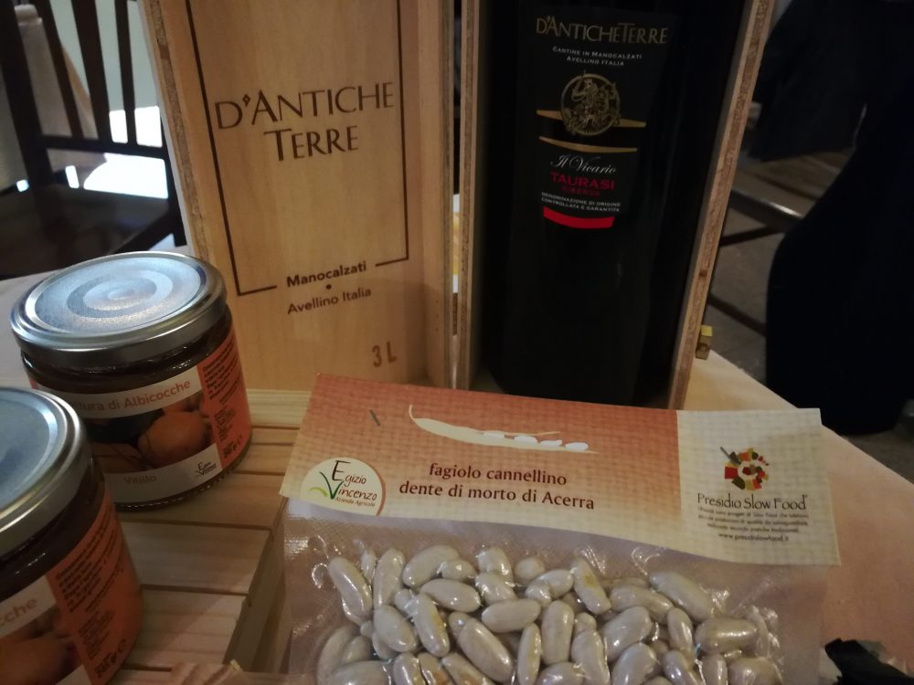 Dal grano prodotto dall’ “Azienda Agricola Filippo Castaldo” di Acerra vengono ricavate le Farine “tipo 0” e “tipo 1” utilizzate principalmente per l’impasto della pizza e dei dolci. Dall’ “Azienda Agricola Vincenzo Egizio” della confinante Brusciano provengono i Fagioli Dente di Morto presidio Slow Food, le Papaccella Napoletana presidio Slow Food e la Confettura delle Albicocche di varietà Vitillo del Monte Somma. Il Baccalà è quello selezionato dal Gruppo Esposito di Acerra. I vini provengono dall’Irpinia e precisamente dalla cantina “D’Antiche Terre”. Da un pò più lontano provengono i Capperi ed il Sale, rispettivamente da Salina e da Trapani. I Pomodori ed in particolare il San Marzano Dop sono Agrigenus, le Mammarelle (i carciofi tipici Acerrani) e gli altri ortaggi sono ovviamente locali.