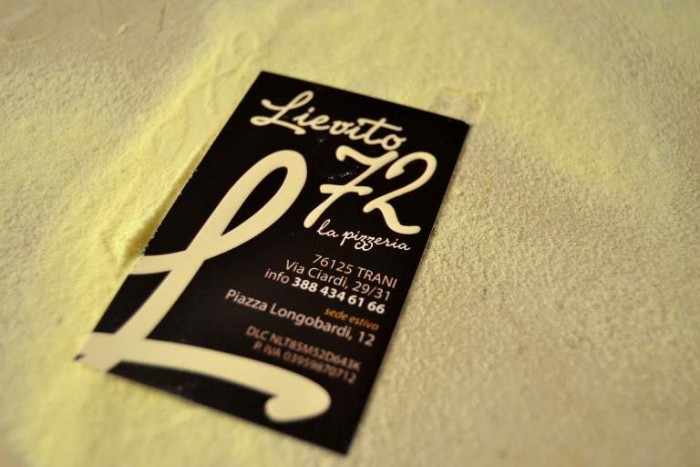Che la pizza, in Puglia, non abbia mai generato una vera e propria “scuola pugliese” (magari come quella napoletana o romana) è ormai un dato di fatto che riguarda solo il passato. Da qualche anno, infatti, in questa regione è possibile assistere sempre più di frequente, ad un vero e proprio approccio “tutto pugliese” nei confronti della storica preparazione popolare. Uno degli esempi più esaltanti di questo nuovo corso, riguarda senza alcun dubbio, la Pizzeria “Lievito 72” di Trani, di proprietà del giovane e talentuoso pizzaiolo Andrea Giordano.