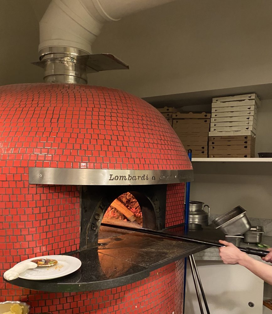 Al forno, posizionato in bella vista all’ingresso del locale, pensa il pizzaiolo Lino Riccio, che propone un’impasto preparato con un bland di farine Caputo lievitato per complessive 24 ore. All’uscita dal forno, la pizza si presenta grande, con cornicione evidenziato, morbida e fragrante. All’assaggio si riconosce la qualità degli ingredienti utilizzati per la farcitura.