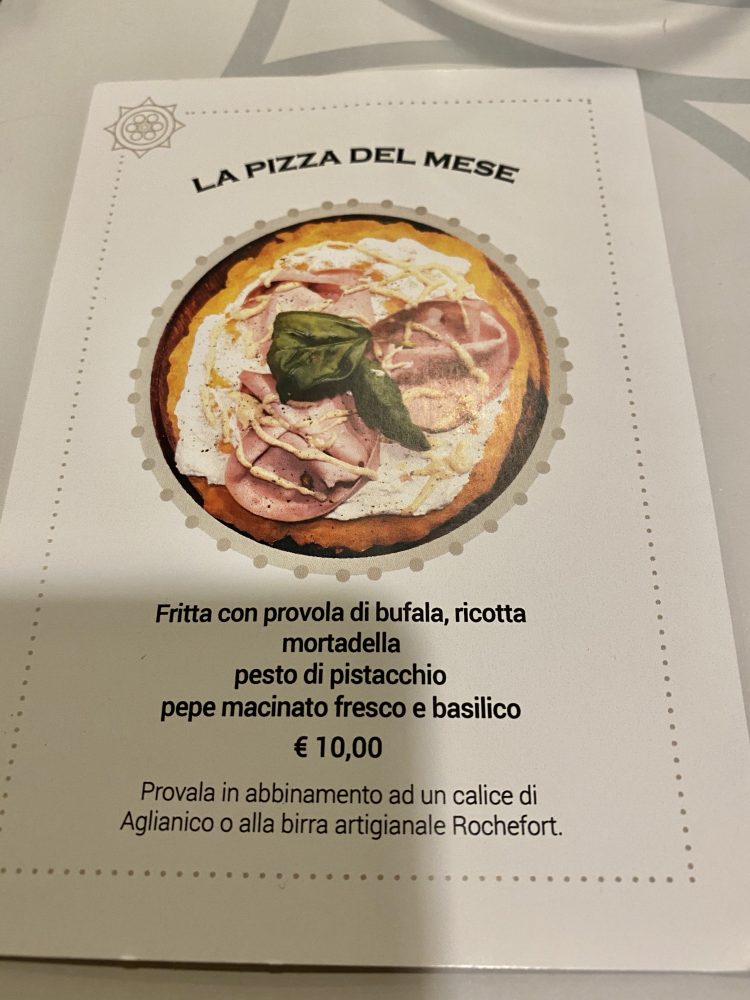 In lista venti gusti tradizionali, quali la pizza Margherita e la Marinara che è d’obbligo assaggiare. Così come la pizza Lombardi, preparata con un tris di pomodorini gialli, arancioni e rossi, provola di bufala e fuori dal forno cosparsa con pancetta arrotolata e parmigiano reggiano grattugiato.