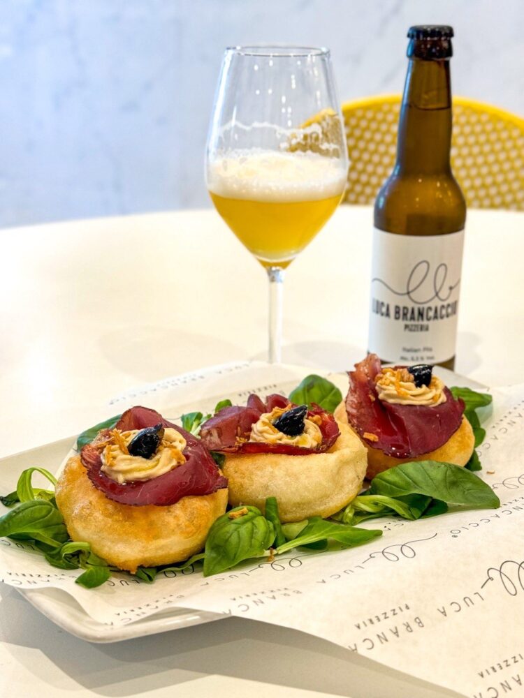 In abbinamento alle prime due proposte, la Pils Luca Brancaccio, gradevolmente aromatica ed equilibrata, perfetta per accompagnare la maggioranza delle pizze, in particolare quelle più classiche, senza sovrastarne il sapore.