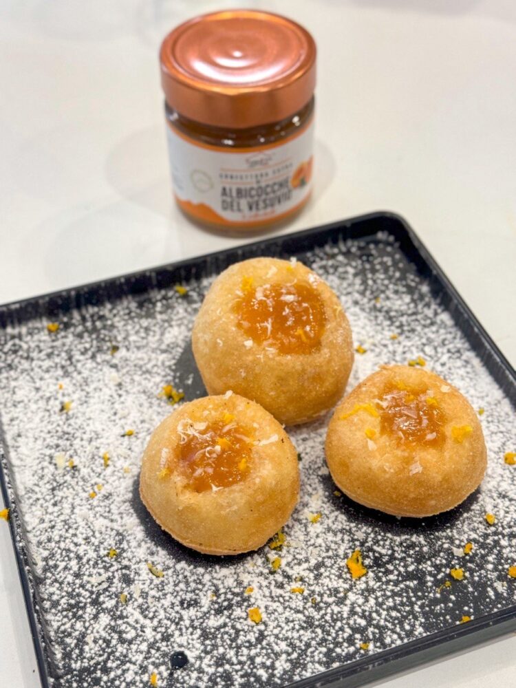 Per concludere in dolcezza, niente poteva emozionarci di più se non le bombette calde ripiene di confettura di albicocche la pellecchiella del Vesuvio di Terra Viva e conciato romano della famiglia Lombardi agriturismo Le Campestre due prodotti eccellenza campana, nostri carissimi amici.