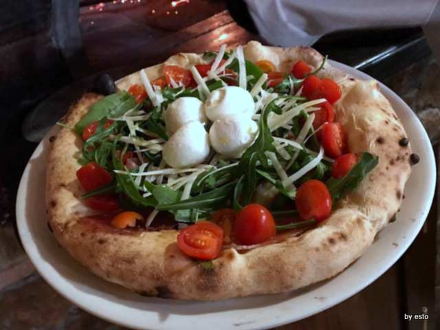 La Specialità con fiordilatte di Agerola, pomodorini, prosciutto, grana, rucola e bocconcini di bufala.