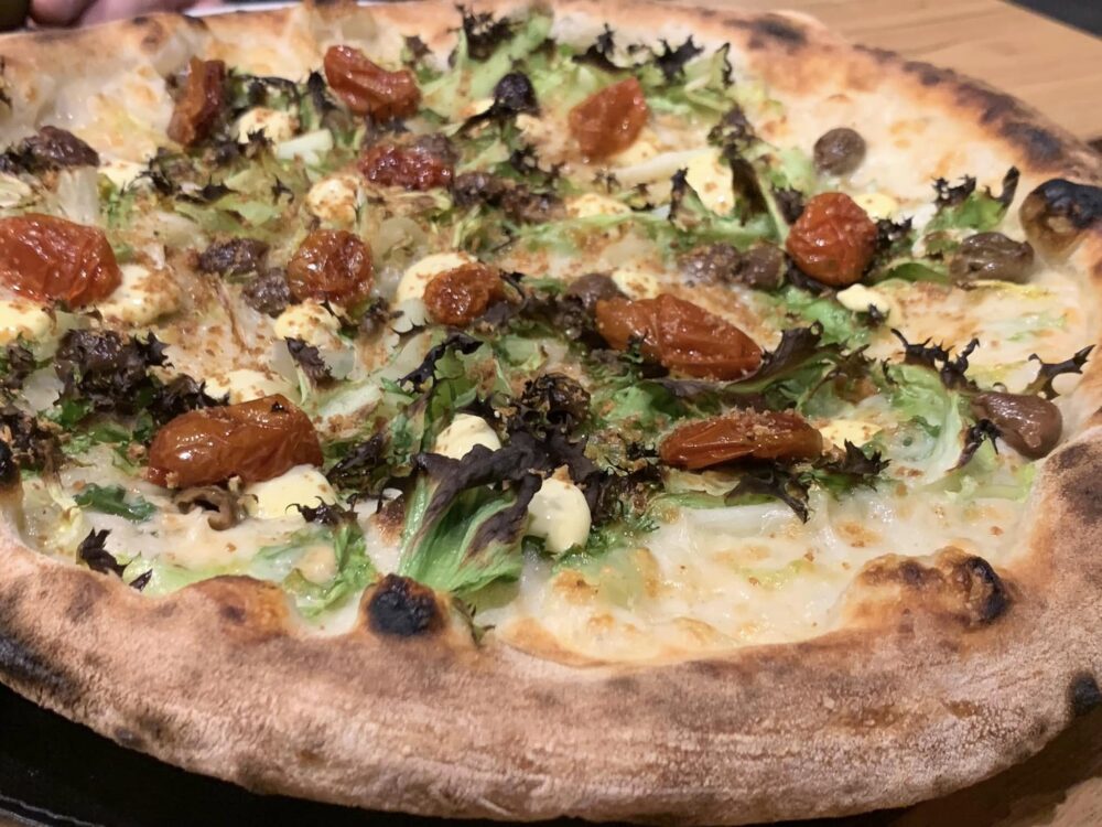 La pizza guarda come tipologia a quella napoletana, con base molto sottile e cornicione poco pronunciato ma in realtà se ne allontana perchè leggermente biscottata. Gustosa ed equilibrata, risulta nel complesso molto leggera e si distingue anche per gli ingredienti delle farciture, tutti di ottima qualità (menzione speciale per la ‘Salsiccia e broccoli’).