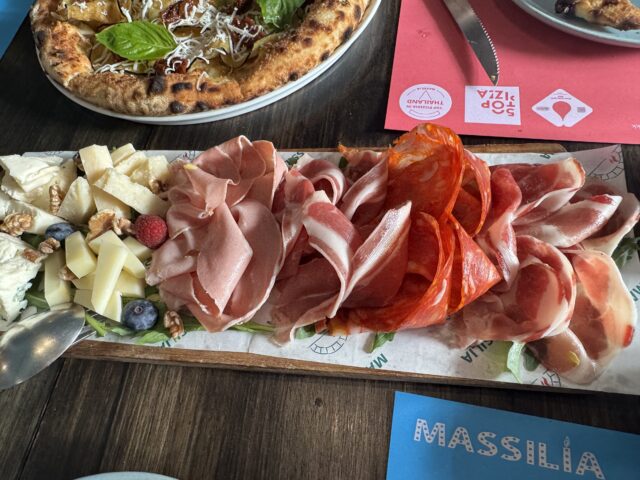 Con mia grande sorpresa ho trovato Bangkok particolarmente interessante sotto tanti punti di vista, tra cui la ricca e variegata offerta gastronomica di qualità, superando le mie già rosee aspettative. Una capitale in fermento anche sotto il profilo amministrativo e urbanistico, con quartieri eleganti e moderni che hanno trasformato aree un tempo periferiche in zone residenziali e sedi di ambasciate. È proprio nel distretto di di Watthana luogo di negozi di alta moda e di locali raffinati di gastronomia che Pizzeria Massilia nasce circa un decennio fa. Il suo ideatore, Luca Appino, chef e imprenditore piemontese con la passione per i lievitati, ha iniziato con un Pizza Track nel 2015, ancora oggi molto attivo e apprezzato, e poi la pizzeria, trasformandola in breve tempo in punto di riferimento per la pizza non solo a Bangkok, ma anche come eccellenza fuori dai confini della capitale della Thailandia.