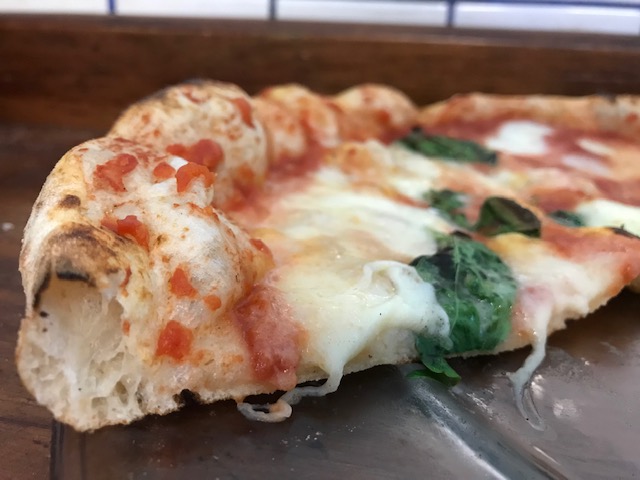 Per coloro che – come me – amano mangiarla al momento, calda e fragrante, Pizzeria Napulè offre una pratica possibilità di appoggio su ripiani alle pareti. C’è cura nella preparazione, così come velocità nell’eseguire le ordinazioni dei numerosi clienti in fila. La pizza prevede un impasto diretto e gli ingredienti usati per la farcia sono scelti con cura, iniziando dal pomodoro e finendo alle verdure.