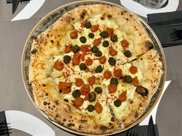 Un bel ritorno alle tradizioni in una chiave contemporanea, che riflette la chiara visione di Giacomo Garau, con uno sguardo attento al presente, reinterpretando il passato in una forma moderna. Il suo impasto alveolato è proposto anche nella sede di Vitulazio, dove il menu è ricco di proposte che affondano le radici nel territorio, rivolgendosi anche a chi ha nostalgia della pizza americana.
