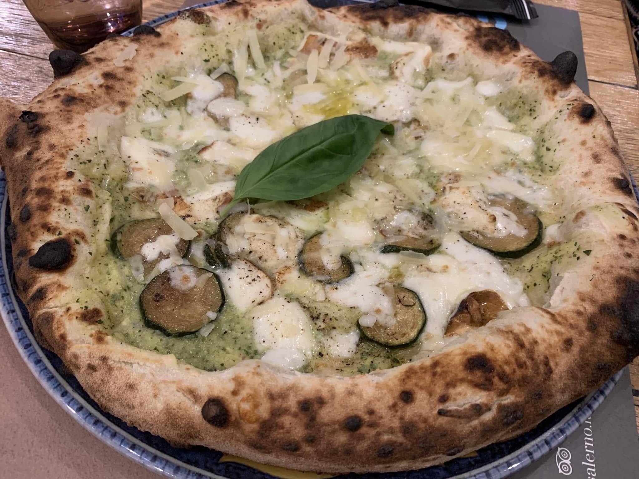 La pizza è ben lievitata e ben cotta, leggera e con base molto sottile. Per tipologia guarda dunque a Napoli, anche se il cornicione, lievemente pronunciato e ben alveolato, tende al croccante, così i salernitani sono più contenti.