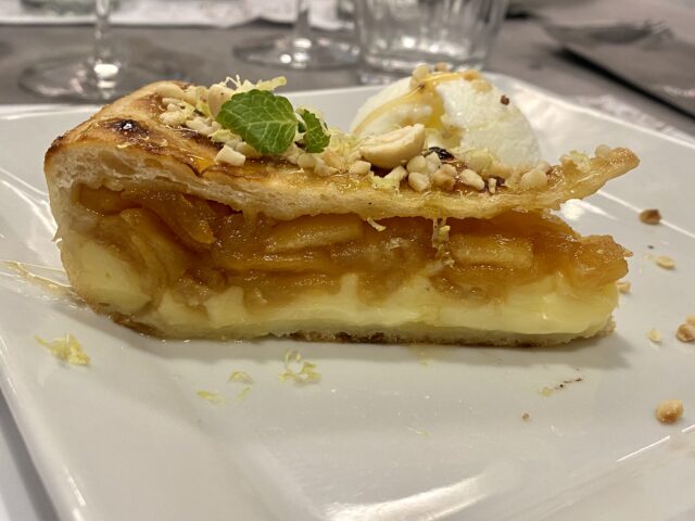 Assolutamente da assaggiare il dessert: Mele Annurche, realizzata con l’impasto della pizza, la mela annurca caramellata e la crema pasticcera al limone che farciscono due dischi di pizza, mentre rifiniscono la preparazione il miele dei Monti Aurunci, le nocciole Gentile Romana e lo zest di Limone.