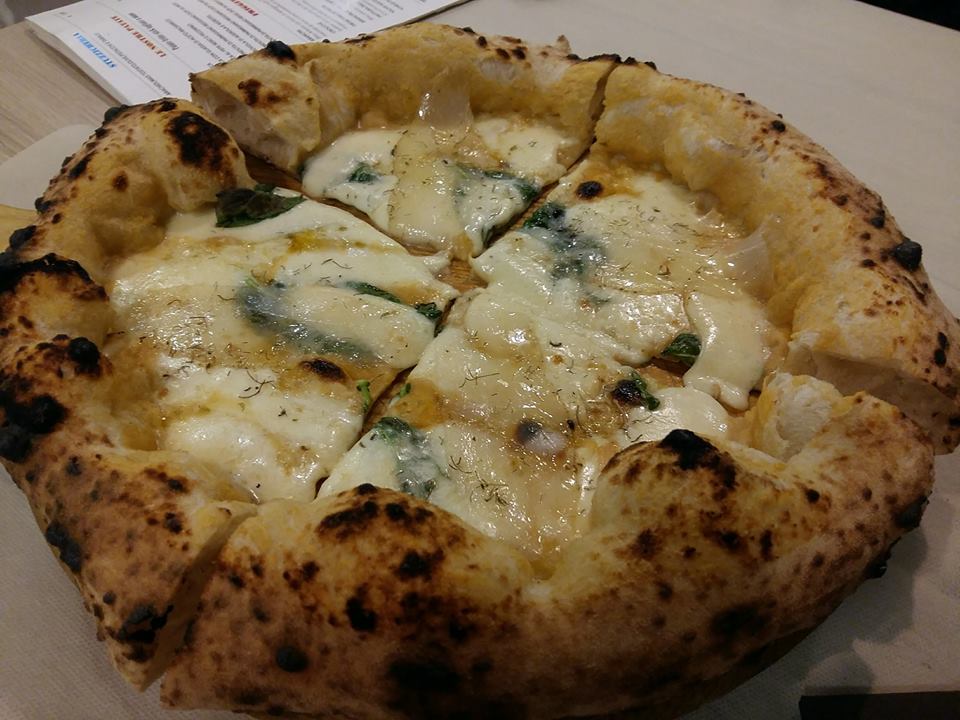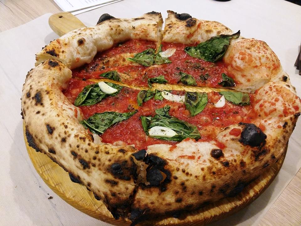 Il locale ha linee pulite, toni chiari, profuma di nuovo. Il menù è veramente lungo, tante e differenti le proposte, la carta dei vini e delle birre è in linea. Noi però siamo venuti per la pizza e pizza sia. L’impasto è molto idrato, intorno al 70%, le ore di lievitazioni sono tante, il risultato finale è davvero interessante. Cottura nel forno a gas e la differenza con il forno a legna non si nota per niente. La margherita è davvero buona, pomodoro e mozzarella si fondono con l’impasto per diventare un tutt’uno, come deve essere una pizza napoletana.