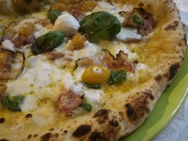 La lista delle pizze è molto ampia e varia: dalle immancabili classiche a quelle stuzzicanti come la ‘Datterina’ (pomodoro giallo di Battipaglia, mozzarella di bufala, prosciutto cotto, ricotta), la ‘Vesuvio’ (broccoli saltati con aglio, provola affumicata, salsiccia di maialino nero), la ‘Nina’ (lattughino, pomodorino di stagione, burrata pugliese e origano), la ‘Suprema’ (bufala, mortadella, burrata pugliese e granella di pistacchi) e ‘Rosso Vita’ (bufala, crema di tartufo, funghi porcini e salsiccia di maialino nero). Per i gourmet più curiosi ecco la pizza ‘Arcobaleno’, (con i quattro spicchi divisi tra Margherita, Datterina, Rosso Vita e Suprema). Per dolce ecco spuntare nella lista la Cioccopizzababà, con impasto ottenuto impiegando anche cacao e granella di pistacchi.