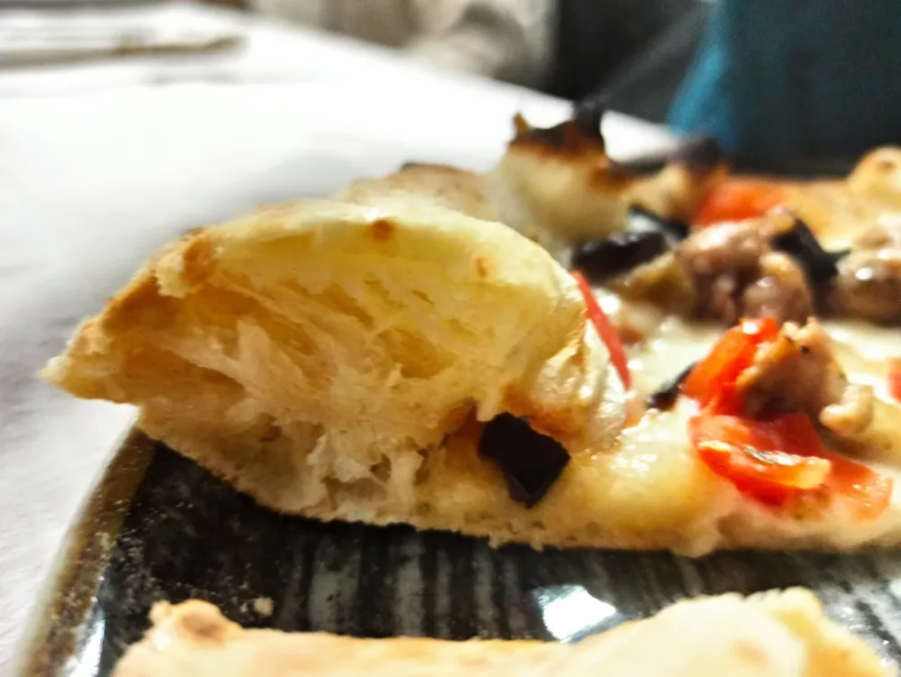 Tutti concordi sulla bontà dell’impasto fatto con farine tipo 00 e una manciata di tipo 0, e sulla sofficità dei cornicioni ottenuta con un’idratazione più spinta e una lunga lievitazione che, manco a dirlo, donano anche una leggerezza che permette di fare vari assaggi senza appesantirsi.