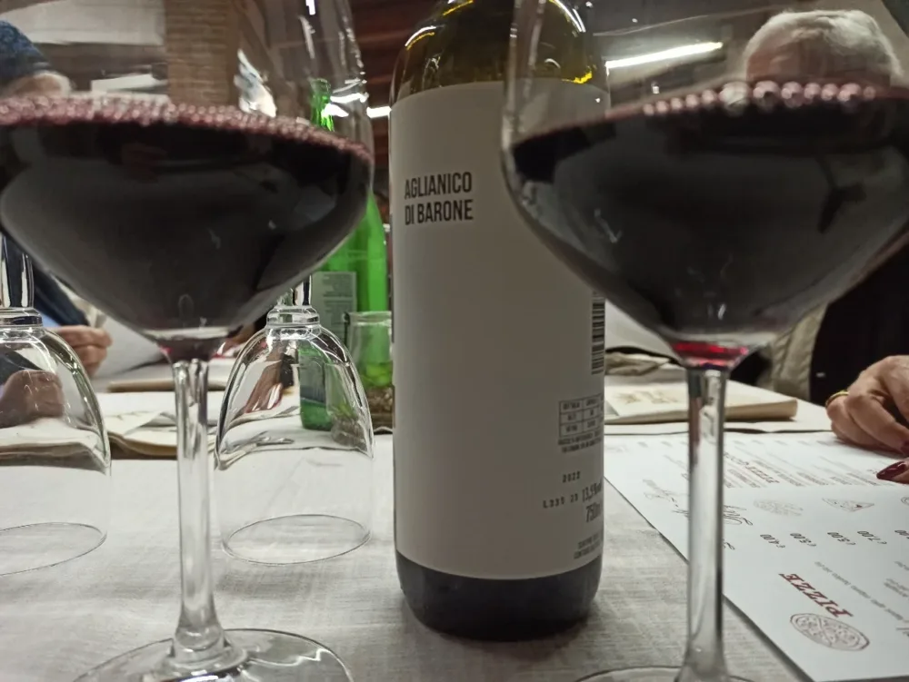 L’Aglianico Barone (6 euro bott.) accompagna egregiamente la serata.