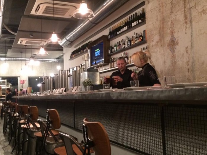 Il locale è enorme, suddiviso tra birrificio e pizzeria con forno a legna, lo stile molto metropolitano: arredamento basico, colori scuri; il movimento, in un insieme altrimenti piuttosto monotono, è creato dalle diverse sedute del lungo bancone. Il servizio è giovane, giovanissimo, ma pronto e gentile. Si capisce ovviamente che lo staff è in fase organizzativa: siamo ancora all’inizio e i numeri sono davvero importanti. Più di 300 metri quadri, circa 200 coperti.
