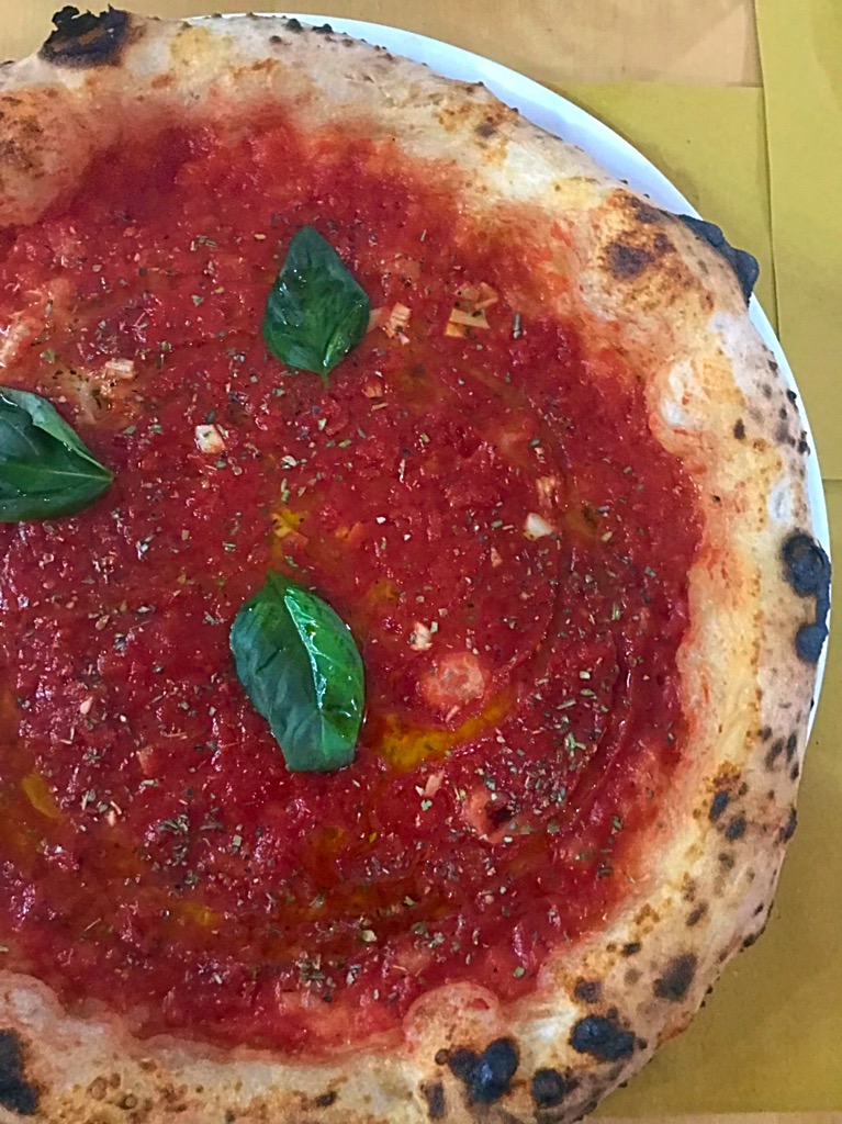 Nel suo locale, Soul Express ( di sessanta posti interni, più qualche tavolo in strada ) prepara un’ottima pizza Marinara, schietta, verace e in equilibrio tra le note di acidità e freschezza date dal pomodoro pelato, che qui è schiacciato a mano. Poi origano, aglio e il filo d’olio.