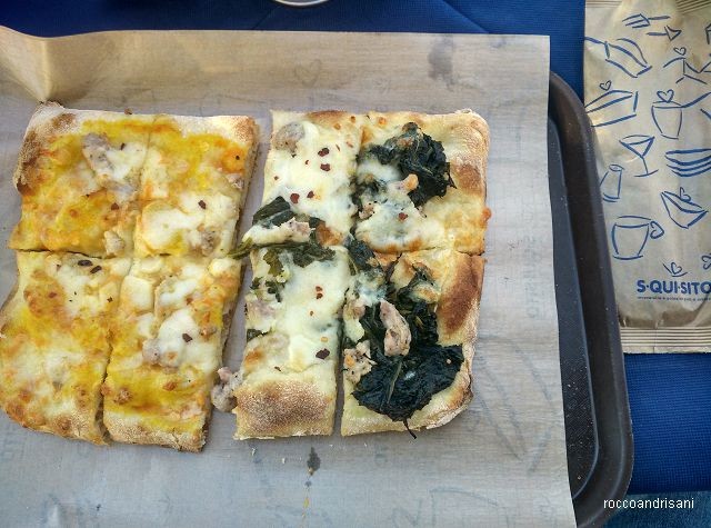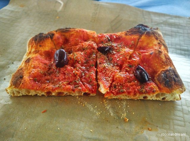 Anche se la pizza al taglio non rispetta (ma in quanto “al taglio” non lo può fare) i canoni della Vera Pizza Napoletana, ahimé sempre più difficile da mangiare anche nella sua Patria, siamo ben lontani dal biscotto col pomodoro (ovvero la pizza al piatto come intesa a Roma) e dal materasso col pomodoro (ovvero la pizza al taglio, sempre secondo i dettami dell’Urbe).