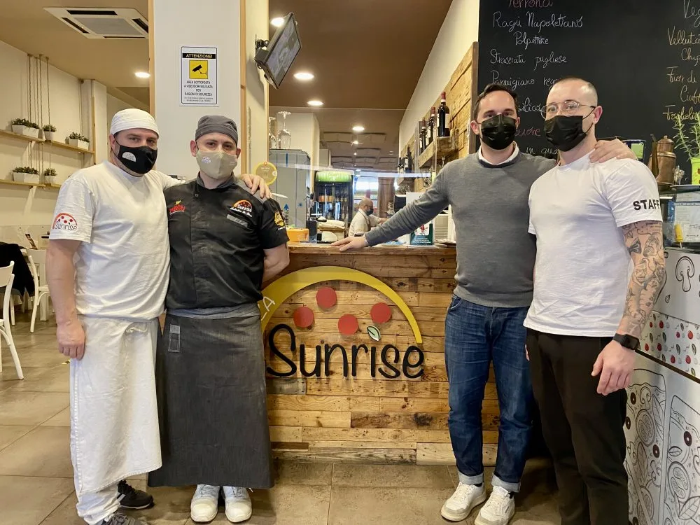 Pizzeria Sunrise – Giuseppe Russo, Salvatore Di Bona, Enzo Topo, Bernardo Verrillo 24/2/2022 Torna a: Pizzeria Sunrise: una sosta raccomandata per mangiare una buona pizza, anche per i celiaci Pizzeria Sunrise – Giuseppe Russo, Salvatore Di Bona, Enzo Topo, Bernardo Verrillo← Precedente