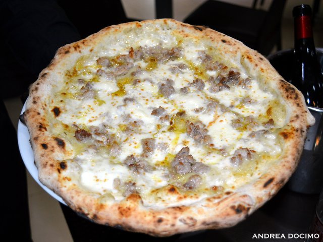 Assoluta, una delle pizze migliori che il mio palato abbia mai avuto modo di assaporare. Ottimo “making of” anche per la “Telos”, chiamata a rappresentare il locale: pacchetelle del Piennolo Dop, pomodorini gialli Gia-Giù, mozzarella di bufala Dop, lardo pancettato, pepe macinato fresco, scaglie di Auricchio piccante ed olio evo bio.