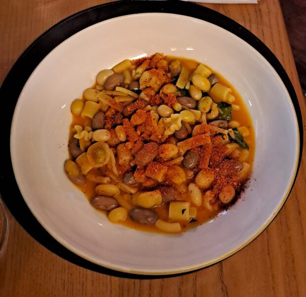 Proseguiamo con i primi, quelli che più di ogni altra portata ci hanno fatto immergere nell’antica cucina della tradizione: la genovese di coniglio e la pasta e fagioli con polvere di peperoncino.