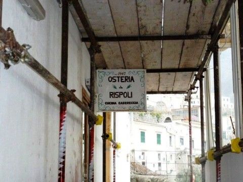 L'osteria fu aperta da Luigi e Maria, genitori di Enza e Marina nel 1947; soldi per altre attività non ce ne erano, si viveva quasi un'economia dello scambio. Come di norma, in tempo di guerra, i Rispoli avviarono una semplice mescita e rivendita di prodotti a peso: legumi, farina, salsa di pomodoro, sale e così via. La vera attività di osteria parte agli inizi degli anni'60, quando fu finalmente realizzato un sentiero acciottolato dandogli il nome di strada; prima era possibile raggiungere i Rispoli solo a piedi. Fino a tre anni fa c'èra anche la salumeria dei Rispoli, poi chiusa. La spesa per l'osteria papà Luigi andava a farla a piedi. Nel pieno dopo guerra, la clientela era esclusivamente locale e per lo più maschile; si giocava a carte, si beveva vino e in tavola arrivavano i piatti caldi di Mamma Maria: la zuppa di soffritto, la caponata, il baccalà fritto, o, in cassuola. Enza e Marina non si sono sposate, la famiglia è grande, ma, sembra che solo qualcuno dei pronipoti nutra un certo interesse nel continuare la tradizione dell'osteria. Le due sorelle sono praticamente nate tra i fornelli. Marina ha sempre seguito l'attività di famiglia, mentre, Enza per vari anni è stata via, per poi rientrare a casa circa trent'anni fa. La casa di famiglia è in piazza, tutto è rimasto come allora, assente la malavita, si ascoltano i “rumori” del silenzio, del vento e del mare. Le due sorelle si rivolgono a fornitori di fiducia, gli stessi da oltre 40 anni: il pane arriva da un forno a legna di Furore, “il paese che non c'è”; gli ortaggi e la frutta Enza li sceglie di persona dalle cassette dei contadini amici della zona: la vera ristorazione a km zero.