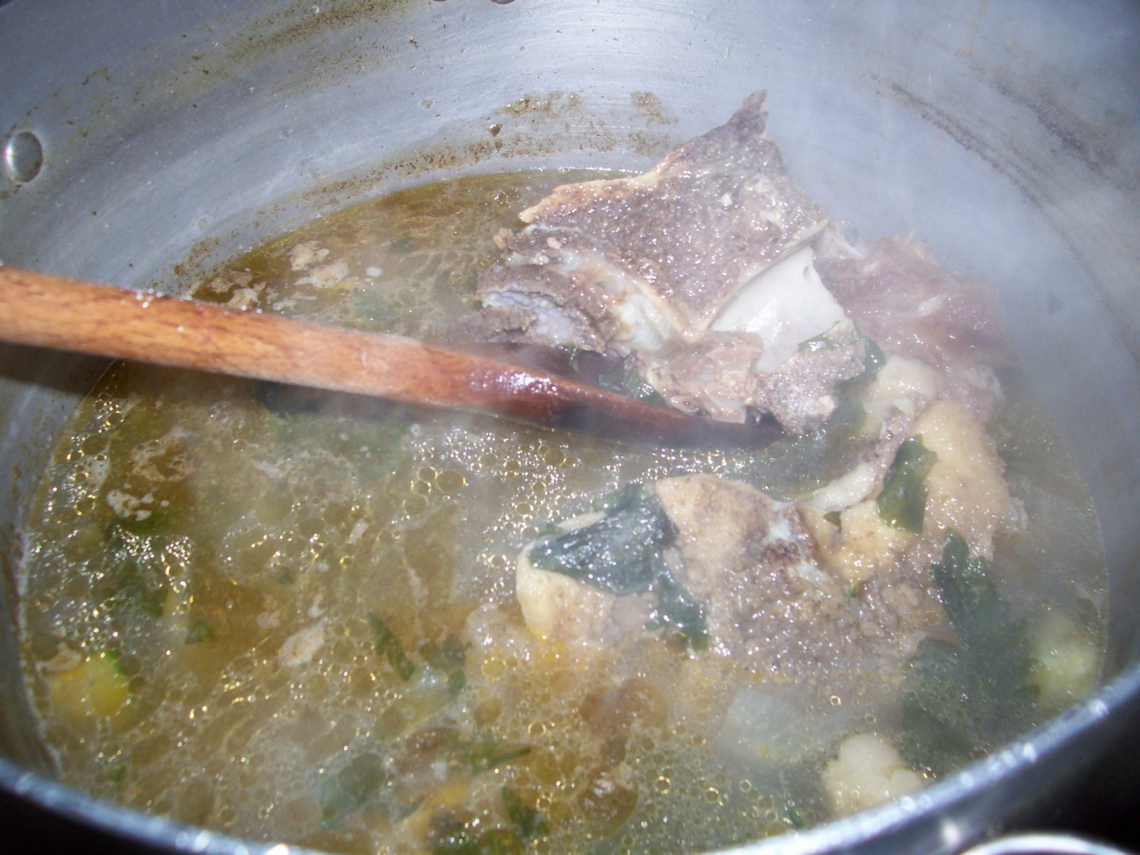 250 gr di farina di granturco gialla, 2 ossa di ginocchio di vitella per il brodo di cottura, 1 costa di sedano e ½ cipolla