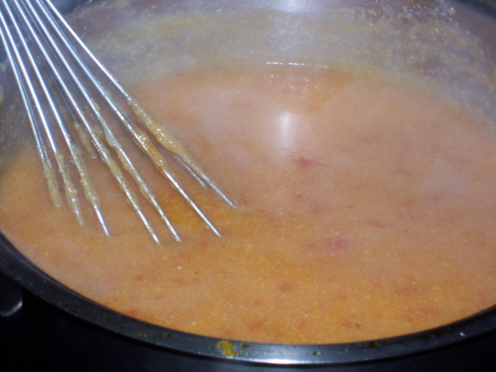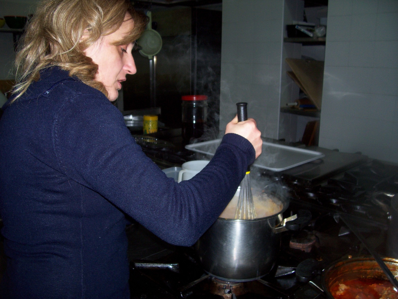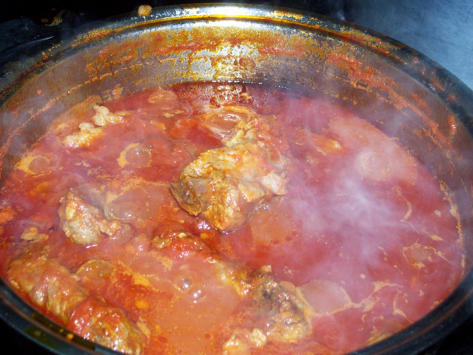 Per la polenta: mentre il sugo cuoce, in una pentola mettere 3 lt. di brodo che avrete precedentemente preparato con le ossa di vitella e quando bolle unire la farina di granoturco un poco alla volta per evitare che si formino grumi. Mescolare continuamente sino a cottura ultimata. Durante la cottura se la polenta dovesse restringersi troppo unire qualche mestolo di sugo.