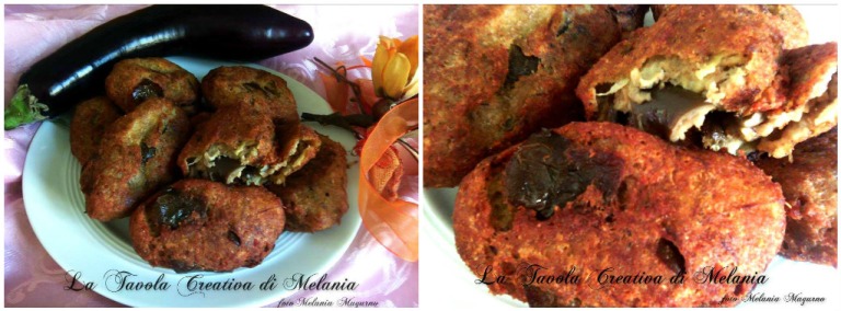 Lavate bene le melanzane, tagliatele a pezzetti e fatele cuocere per circa 15 minuti in acqua salata, una volta pronte fatele scolare. Lasciatele raffreddare e schiacciatele bene con le mani fino ad ottenere un composto omogeneo che unirete alla mollica di pane e a tutti gli ingredienti. Formate delle polpettine e friggetele in abbondante olio caldo (oppure cuocetele in forno). Servitele calde.
